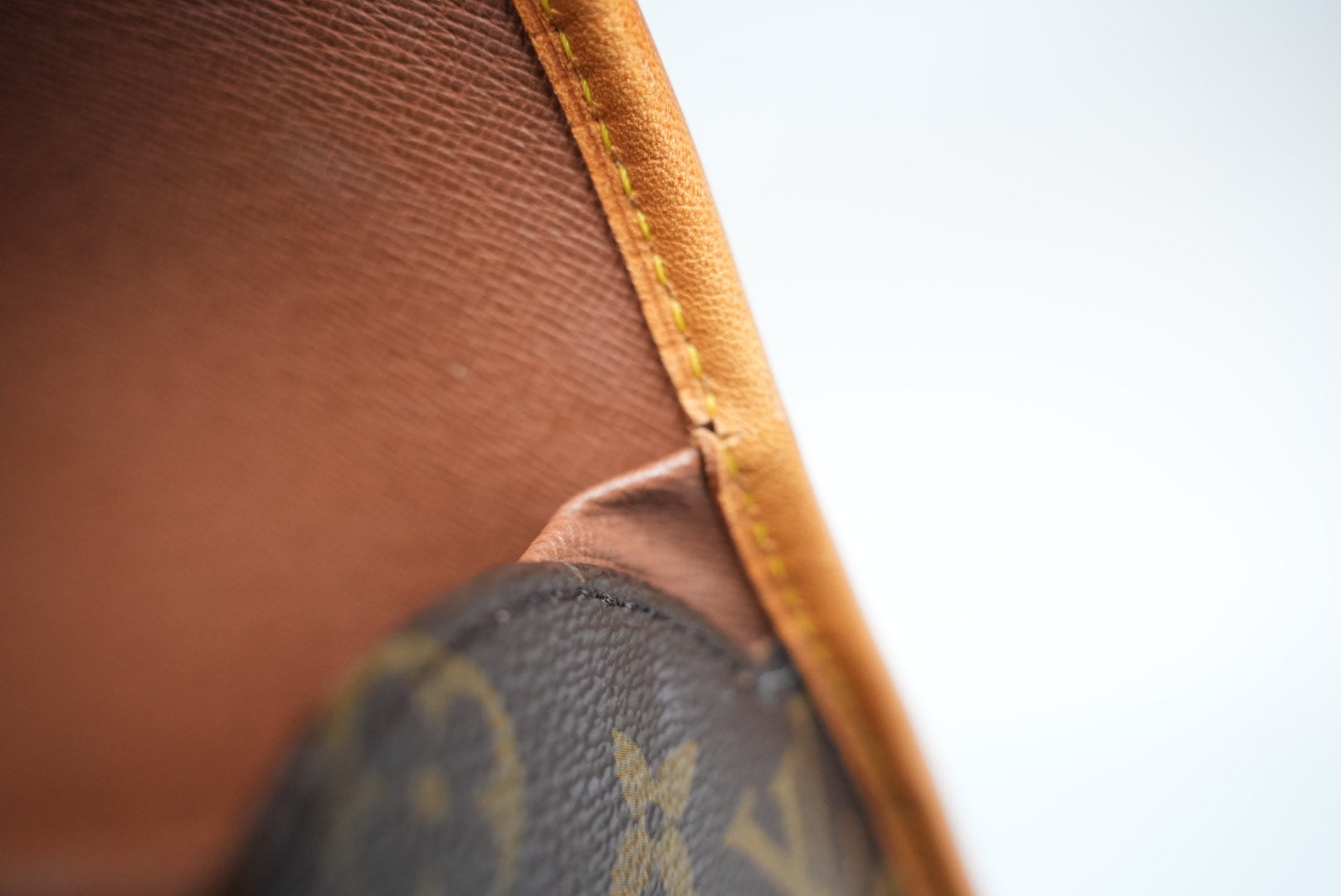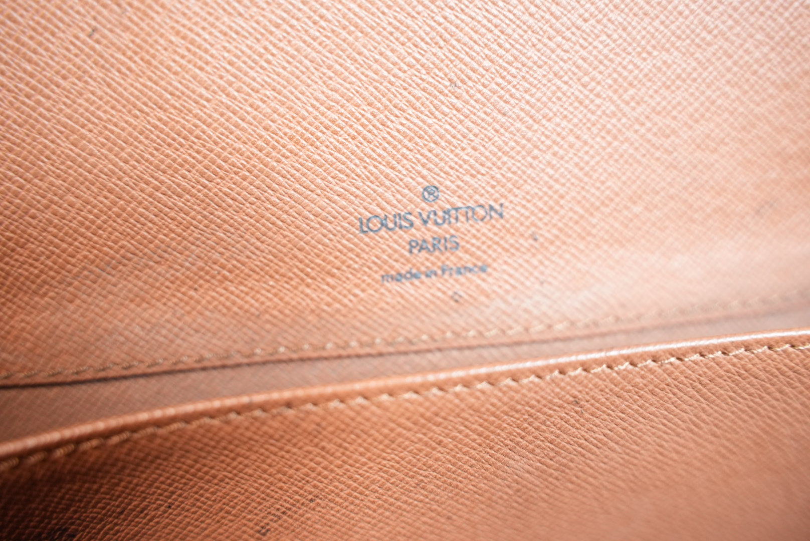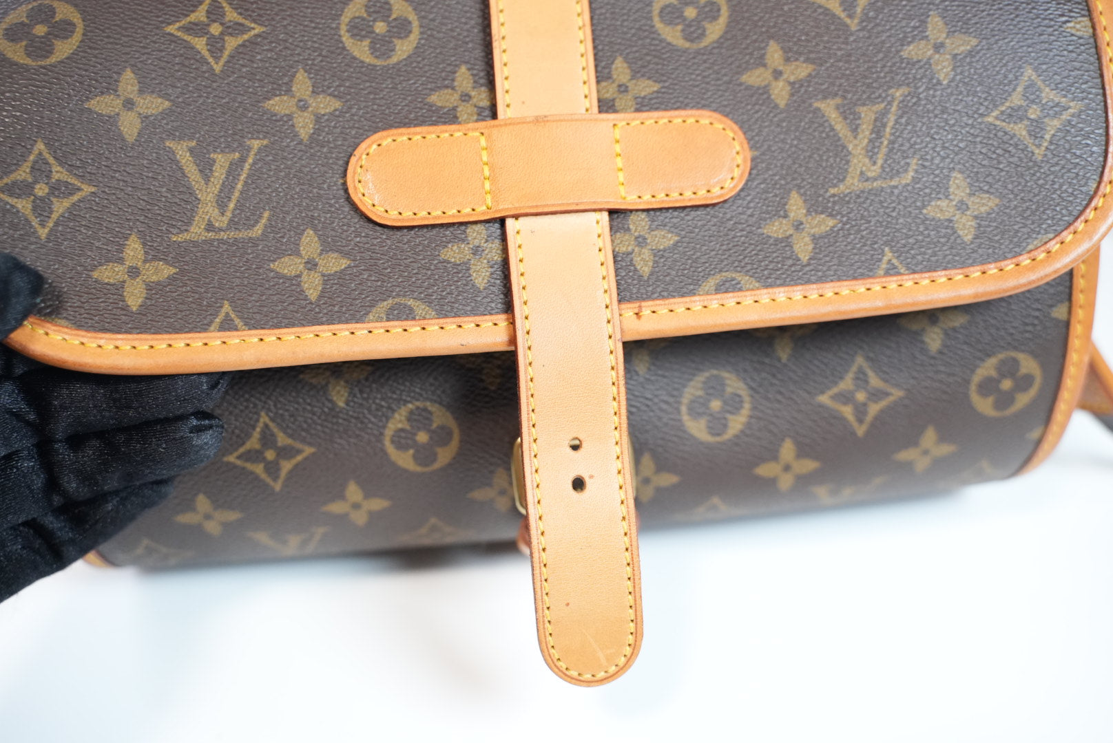 Leather pipping show normal signs of wear and no holes