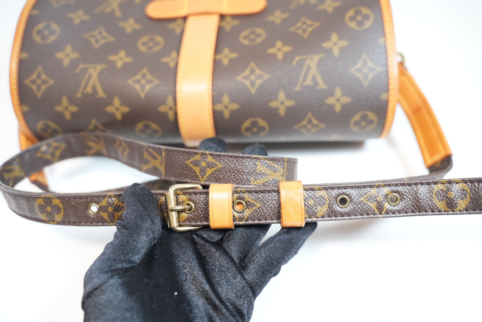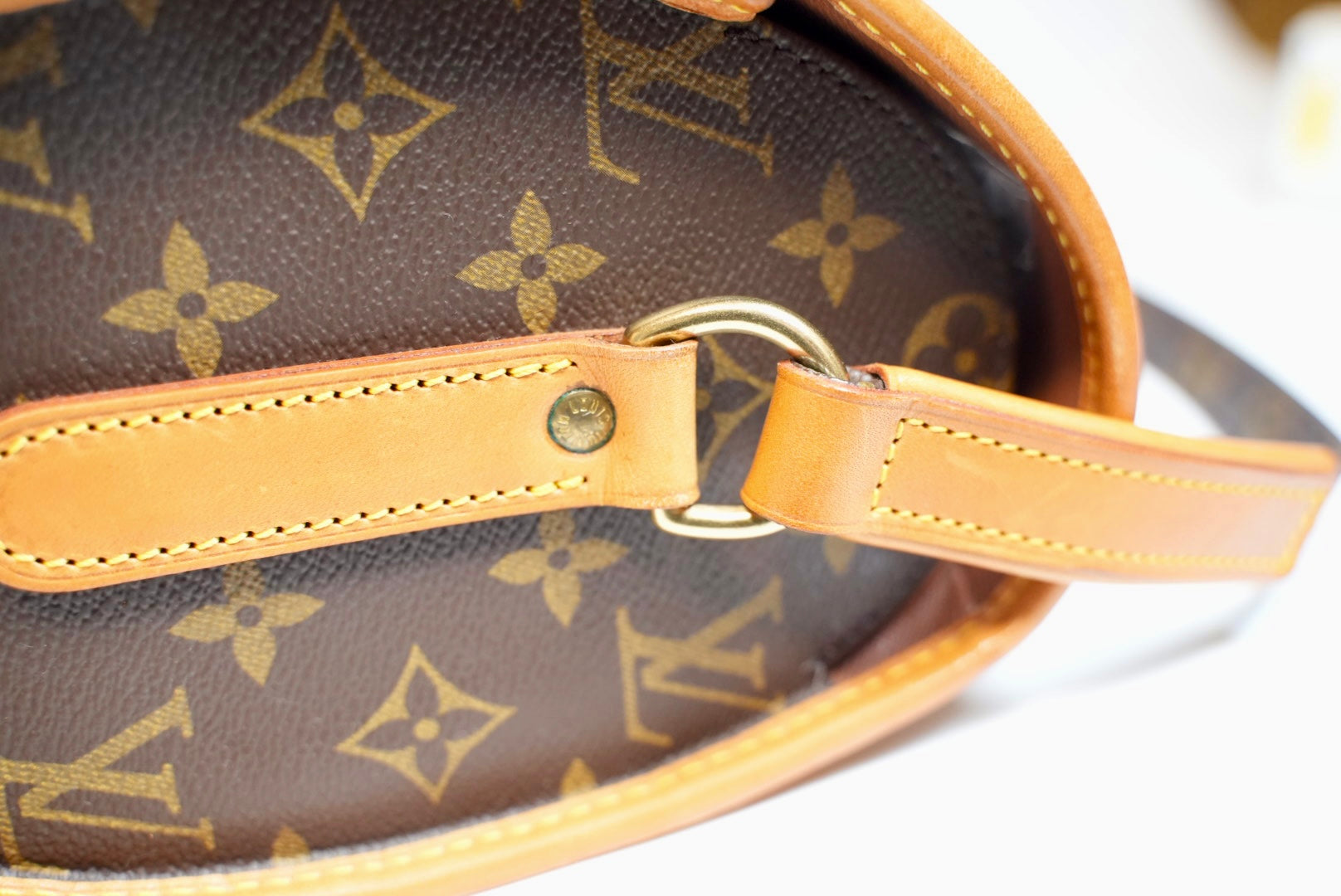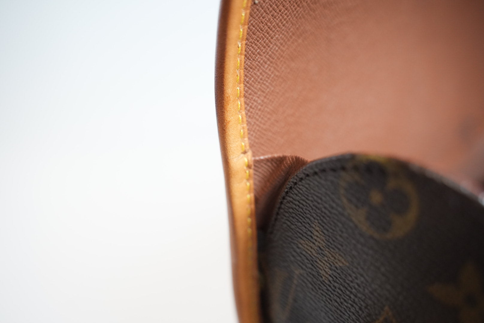 Leather pipping show normal signs of wear and no holes